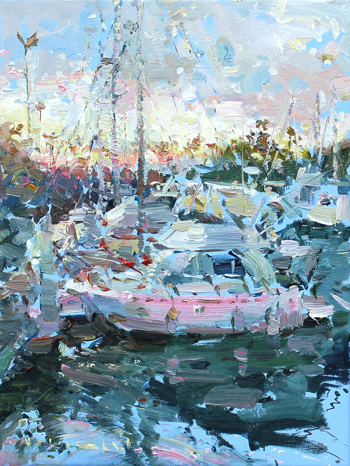 Just as much as I love evening and night studies, I adore boats. I dissolve into them, playing with the rhythms of decks, where contrasts of verticals and horizontals turn into a kind of music, and color ā like spices ā adds emotion.